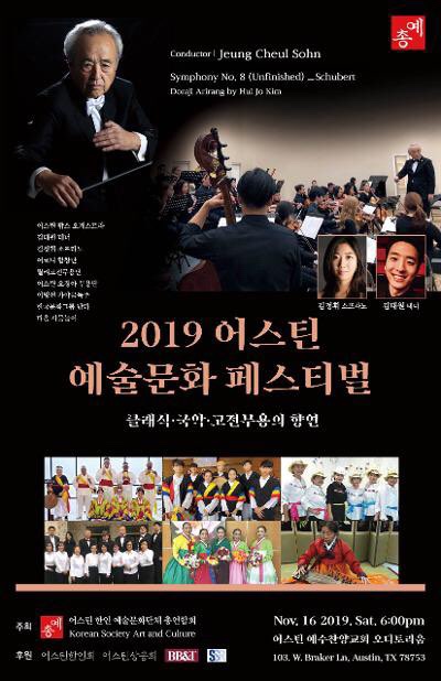 오스틴 예총 – 예술의 향연 10월 15, 201911월 15, 2019 오스틴 예총 – 예술의 향연 오스틴 예총에서 가을을 맞아 클래식과 한국 무용, 국악이 만나는 향연을 2019년 11월 16일 예수 찬양교회 오디토리움에서 가진다. 오스틴 한인들의 많은 관심과 참여를 바란다. 글쓴이: 이 정희 이 정희의 모든 글 보기